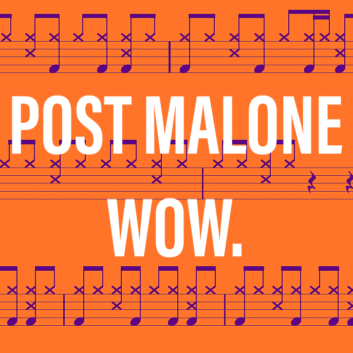 Full drum transcription for "Wow." by Post Malone